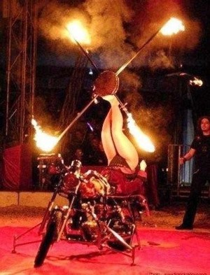 Exciting Foot Juggler on a Motorcycle!